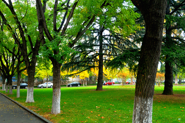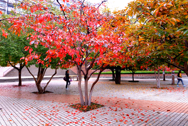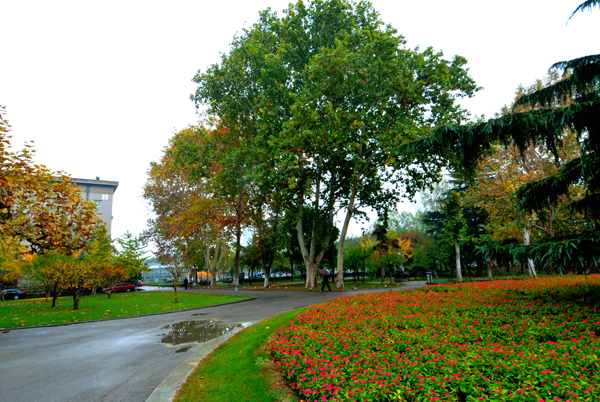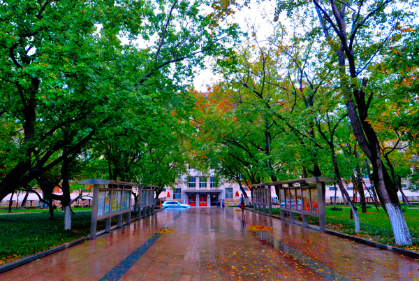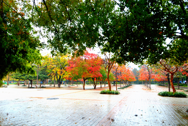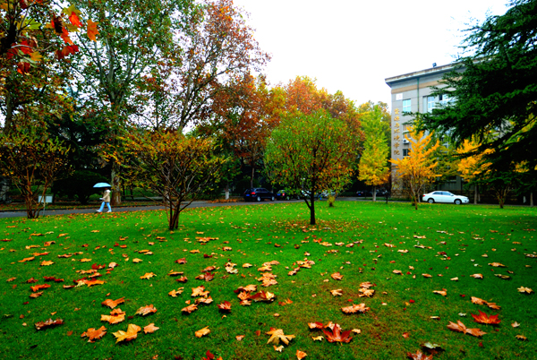秋雨中的校园更加美丽
