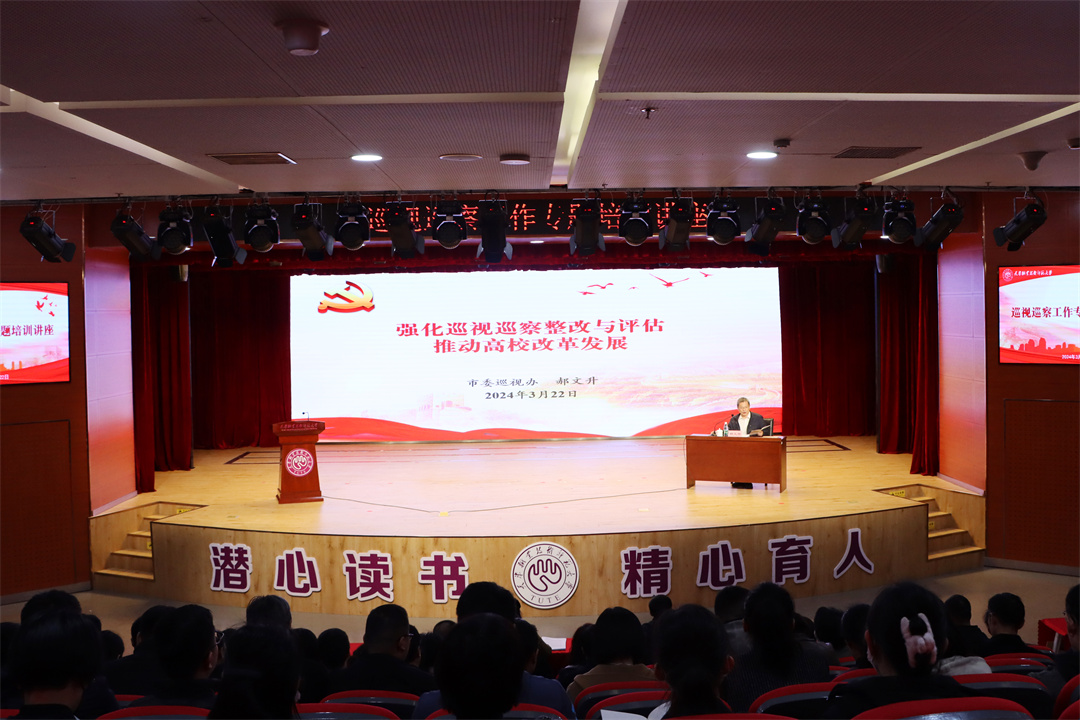放哨任务办公室副主任郝文降同道做查看梭巡任务博题道座。校党委副布告李靖把持聚会,校党委常委、派驻纪检检察组组少余坤亮列席聚会。